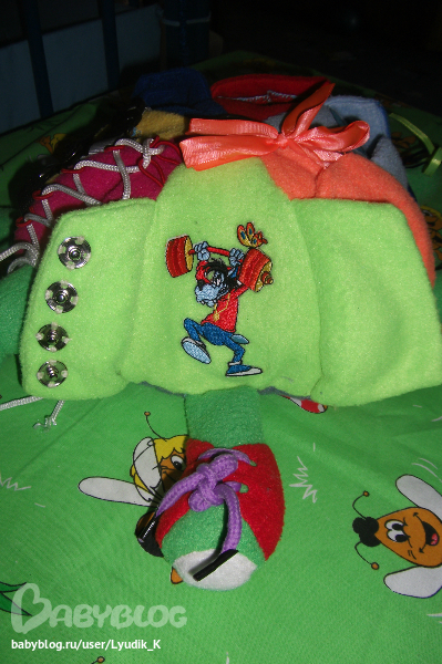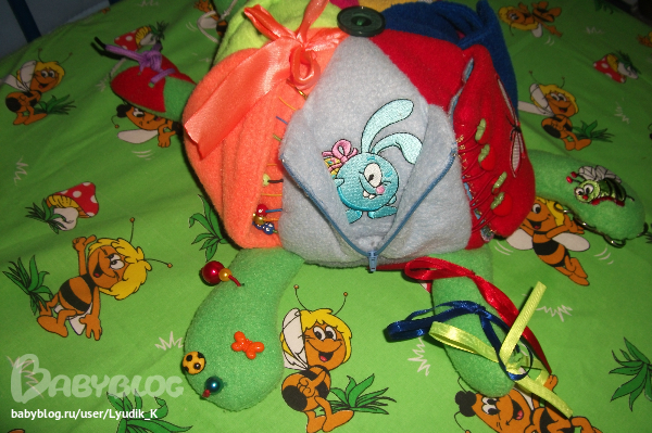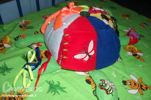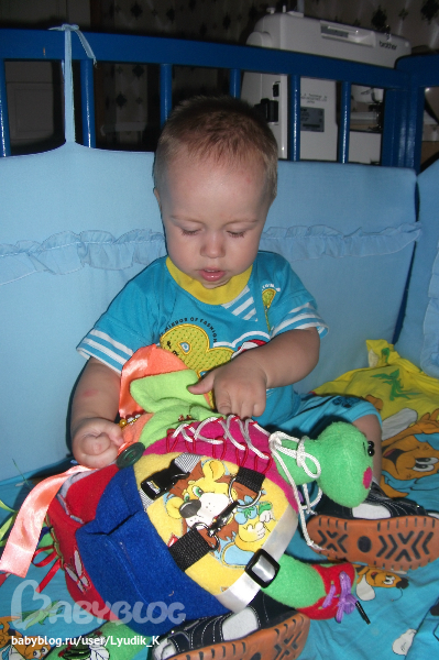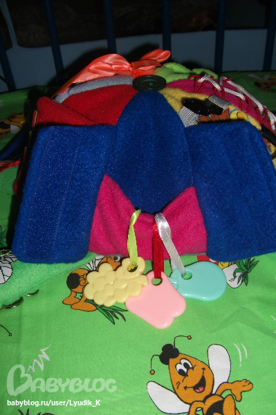 вот сшила своему малышу игруху...как обычно наши любимые липучки,кнопочки,дергалки...
