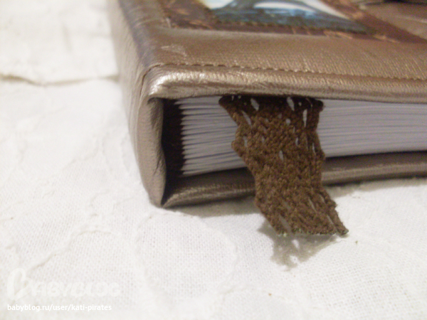 Обложка мягкая, снаружи виниловый кожзам, проложена синтепоном, закрывается на ремешок с кнопкой) пимерно 120 линованных страничек, кружевная закладка.