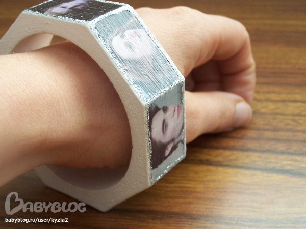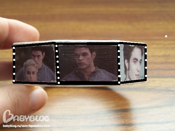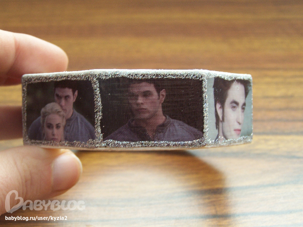 Делаю браслет для подружки с фото вампиров из фильма Затмение. Вроде фото сделала, рамочки из клея с блестками тоже(немного коряво- заметка на будущее для себя- ну этот клей...лучше чего то приклеить между фотками или так оставить) , а вот как верхнюю часть украсить не знаю... Могет стразы приклеить или так оставить? Кто нибудь, посоветуйте!!!!!