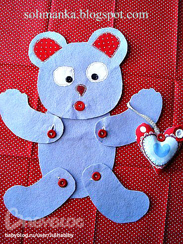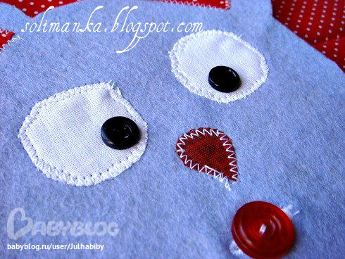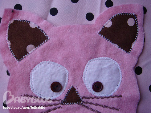 Фетр у нас дорогой да еще и поискать надо, поэтому решила использовать салфетки. Склеила их вместе, после чего вырезала детали: лапы, уши, хвосты. Тема животных думаю близка каждому ребенку, независимо от пола. Прорези сначала зотела просто прорезать, не обрабатывать. Но т.к. это предназначается в детский сад и видимо использоваться будет помногу, решила все таки обработать петли. Хорошо моя машинка это позволяет.