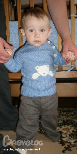 Вай, какой красавец! Очень аккуратный свитерок! Хорошая работа! Все-таки самой связанные вещи лучше покупных. А моя свекровь считает, что лучше купить, чем тратить деньги на спицы и ниткики :(