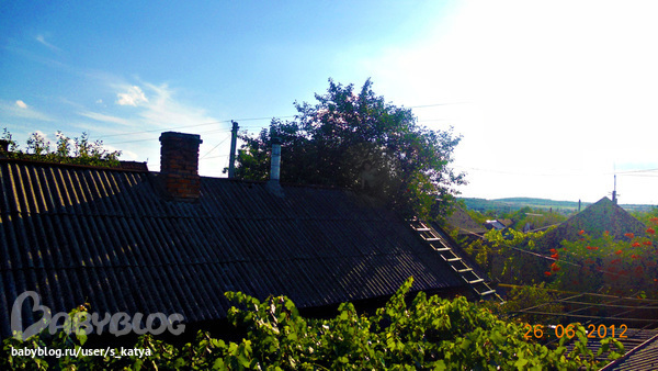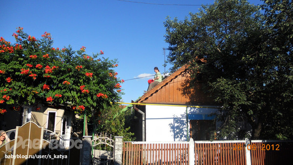 Спасибочки))) Там по другому и не соберешь а вишня редкая очень хорошая, то что можно было собрать ниже собирали с помошью лесницы и машины. А дальше нужно было только на крышу вот меня и закинули туда, а я высоты страшно боюсь, но так как было жалко чтоб вишня пропала пришлось туды залесть))))))))