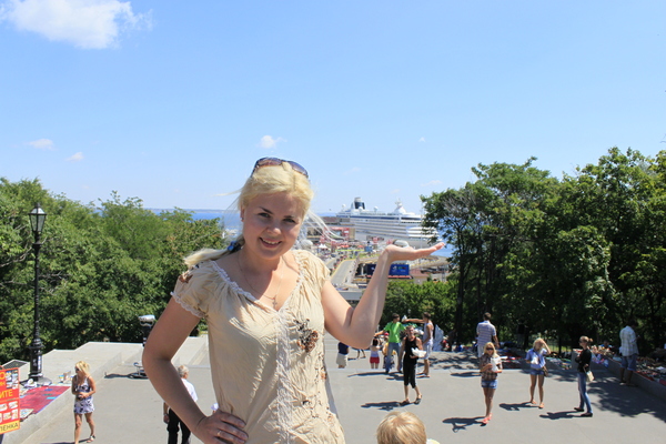 Привееет! Я была на море, но предупреждала   Отдохнули мы здорово! Но оно и понятно, что вышивалось там очень мало. Более того, муж в 5 утра, выезжая, увидел приготовленный пакет с вышивкой и...спрятал его, наругав меня и запретив везти СИЕ на море))))))))))) Но последнее слово, естессно, осталось за мной  Вышила я мало, конечно, чуток зелени, закончив левый нижний угол.  И пару фоток с моря, кому интересно :) Одесса, лайнер в порту   На пляже с Тимофейкой Остальные фото будут в дневнике))