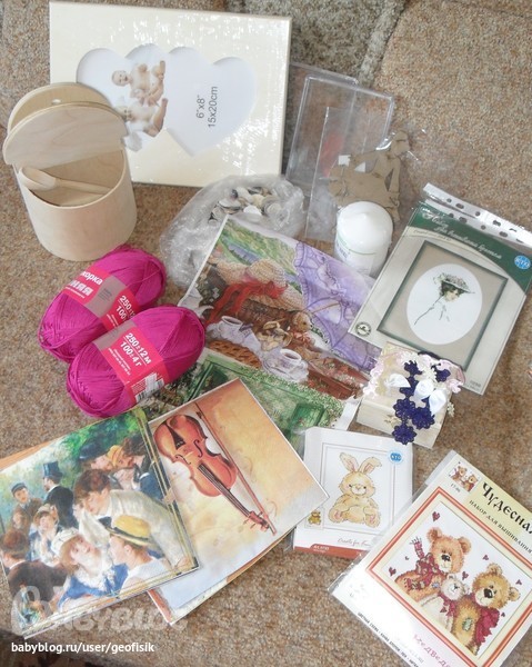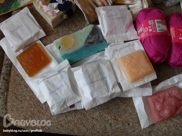 Наташа обменятся рукоделками!!!! Я вышивала для неё метрику для доченьки, а Наташа варит обалденное мыло!!!! И вот Наташа решив приурочить посылку к моему (скорому) Дню рождения просто завалила меня подарками!!!!!! Я, конечно, от такой неожиданной радости была просто в ШОКЕ!!!!