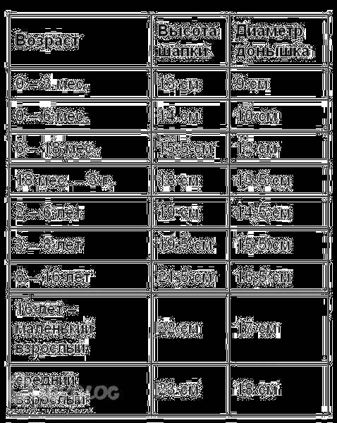 2-6 лет. высота шапочки-19 см., диаметр донышка-14,5см. (у меня в таблице такие данные)