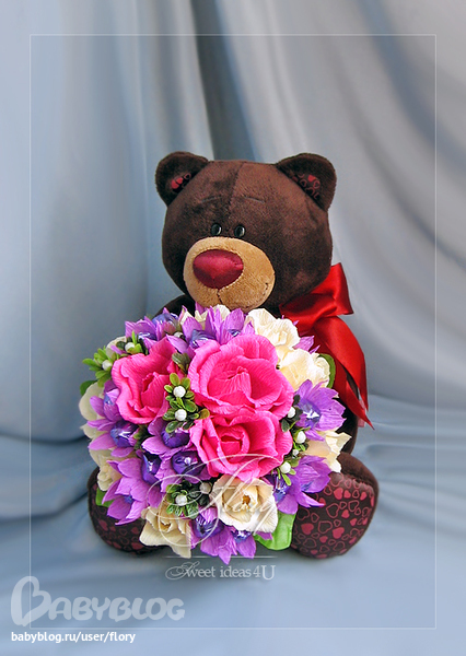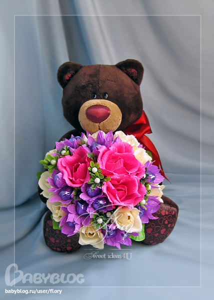 Какая красота!!!И букетик и мишка чудо! Ярко, красиво! Таких мишек вообще не видела, сама бы не отказалась