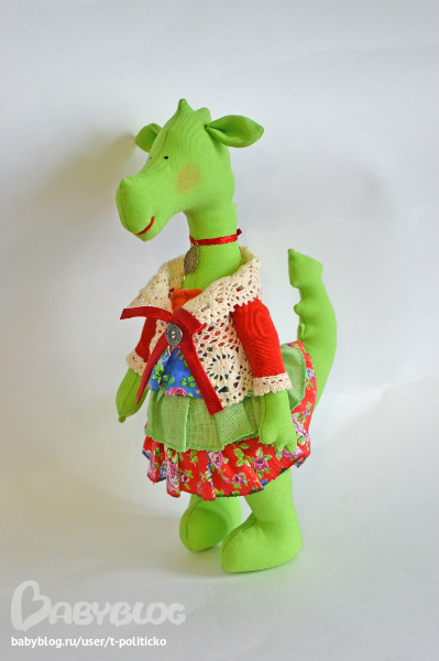Эта дракоша долго ждала когда же её наконец оденут. Наступило лето и на меня нашло вдохновение принарядить дракошу. Знакомтесь