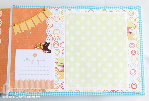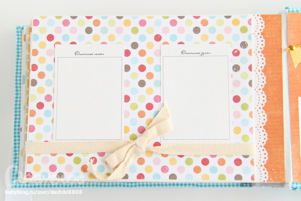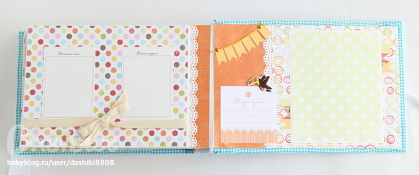 А моя мама в обычном альбоме с серыми листами рисовала красивые рисунки, делала отпечатки моих ножки и ручки, вклеила конверт с первыми волосиками и еще много всего интересного, у нее был самый настоящий скрап-альбом!)