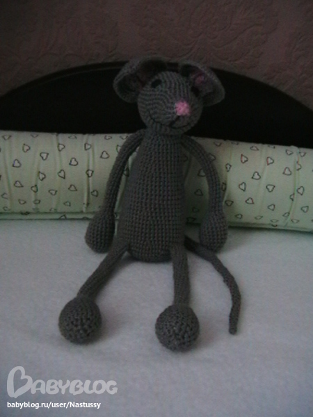 В сообществе вязание он-лайн зязали такого зайца. Я в начале связала двух зайцев, они сразу продлись, а потом мне заказали эту мышь.