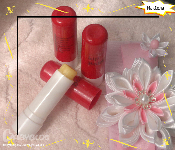 А это бальзам для губ с ароматом банана.Состав: Пчелиный воск, масло кокоса, какао, ши, вин. косточки,вит.Е, отдушка "банан".
