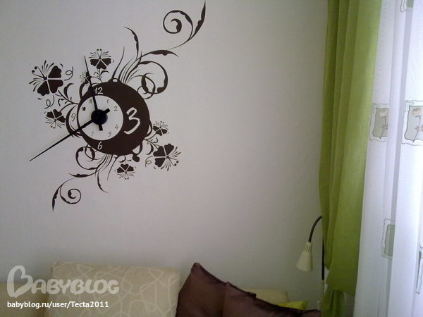 Оригинальное интерьерное решение, для вашего дома, дизайнерские часы в виде виниловой наклейки. Легко клеится на любую, ровную обезжиренную поверхность. Часовой механизм в комплекте. Диаметр корпуса часового механизма составляет 8,5 см, длина стрелок 52см и 40см. Электронный механизм работает на пальчиковой батарее. Корпус пластиковый, стрелки металлические.