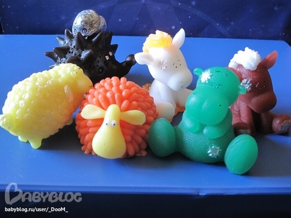 Бегемотик пахнет огурцом, а в ёжика добавила отдушку бал Щелкунчика и он пахнет, как Амеретто ![]()