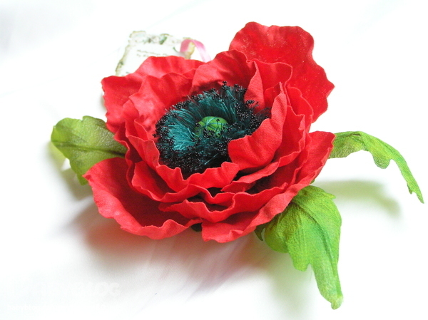 который заколкой в диаметре 8см. 1300р. с листьями -сам цветок 10см. с листвой 16см.они на проволочном каркасе можно их загибать.1700р.