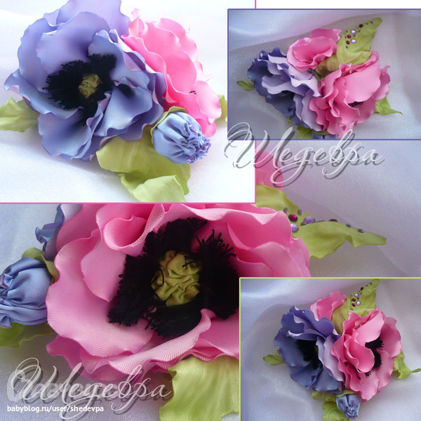 Если мак будет один стоит 350 руб цветок ,с листьями 400. Композиии если делать первый ободок стоит 500руб второй мак сваровски -400руб   сиреневый=розовый 800 руб   пересылка по россии примерно 150-200 руб Срок изготовления около недели.