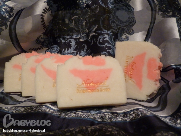 Такое нежненькое, гладенькое !!! А мне, только не смейтесь, розовые тучи бикини напоминают)))) А хорошо мылится такое мыльце?