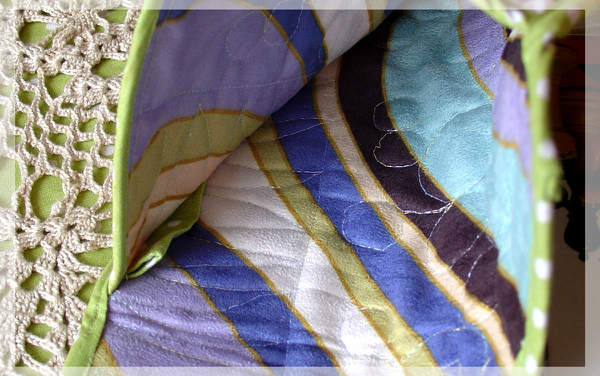 Слушай, а бумагу эту водорастворимую ты как прикрепляла к ткани? Че-то я этот момент упустила. Тоже хочу кое-что простегать, но думала просто водорастворимым маркером нарисовать прям на ткани верха Теперь уже задумалась. И про нитки кстати тоже идея была такая же) А лапка у тебя для стежки специальная или обычная?