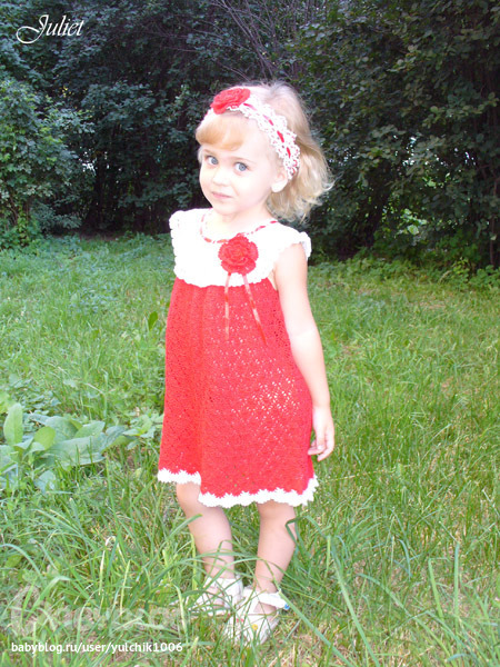 Превосходно!!! Малышке очень идет. А вы не могли бы поделиться схемкой платьица и цветочка?