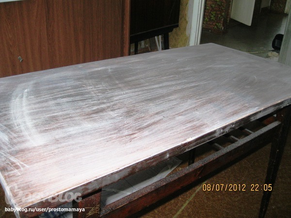 Какая поверхность у стола была изначально? Старый лак снимали?