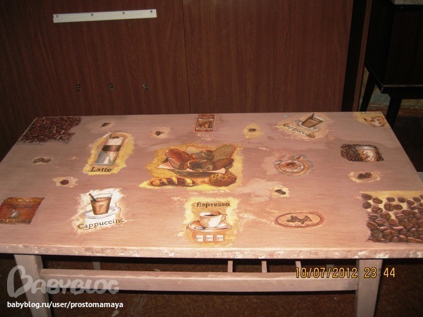 говорит даже кофе перед телевизором не на чем попить!Так что придется мне набираться опыта на других более мелких предметах))))