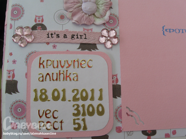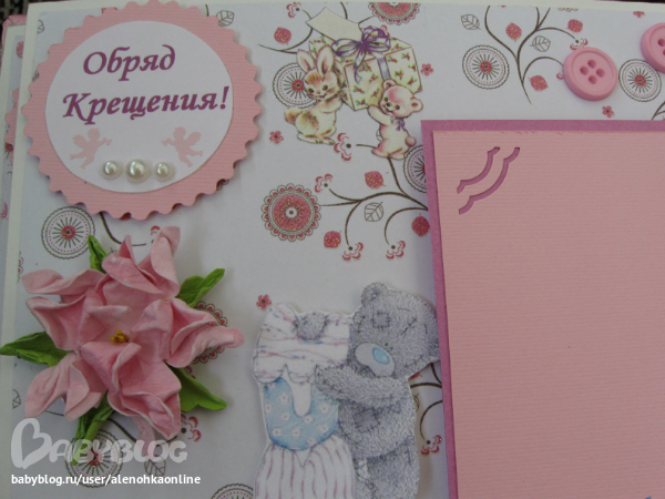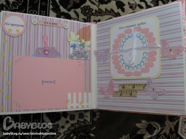 СкрапбукингМой третий альбомчик, закончила пару недель назат, только сейчас получилось выложить. Переплет альбома от Елены Виноградовой.Альбом в тканевой обложке 20*20. 7 листов, 16 страничек. на 27 фото 10*15. за некоторыми фото есть тег. на страничке с крещением конвертик для локонов. на последней страничке зубики, график роста, и первые слова. еще хотела сделать коробочку под альбом, но не хватило времени, сделаю со следующим альбомом. дальше фото альбома.