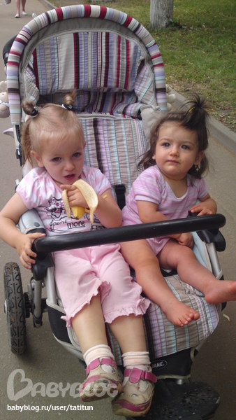Тасе скоробудет 1,10, а Святе 10 месяцев. спокойно помещаются обе в ряд. покупали коляску конечно для Святы, но вот теперь сомневаемся ;)