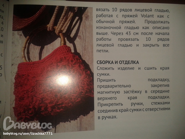 Елизавета в Рукоделие 13 лет Сумочка))) Посмотрите еще 20 записей на эту тему Отменить Ответить marisyaa Сумочка просто шик!!! 19.09.2012 Ответить Елизавета спасибо)))))))))) 23.09.2012 Ответить ALEXYA Обалденная сумка!!! Схему! схему! схему!!! 18.07.2012 Ответить Елизавета на сумку ушло 5 мотков,только пряжу я такую не нашла ,а купила "Карнавал",она очень похожа,и сделала еще дно к сумке овальное. 18.07.2012 Ответить ALEXYA Так это ленточная пряжа? 18.07.2012 Ответить Елизавета ну да,сеточкой такая,я примерно на одном расстоянии петли вязала 18.07.2012 Ответить Лейсан Офигенная! )) 12.07.2012 Ответить Елизавета 12.07.2012 Ответить Оксана Браво! Спицами вязали? Я хочу старую сумку обвязать подобной пряжей, как думаете, получится? 11.07.2012 Ответить Елизавета Спасибо,я думаю что легче новую связать,из этой пряжи она плотная получается,надо еще на старую сумку посмотреть и подумать)))))))))))) 12.07.2012 Ответить Оксана Подумаю ещё конечно. Но ваша- супер. Есть женщины в русских селеньях! 12.07.2012 Ответить Елизавета 13.07.2012 Ответить Natasha Вот это да!!!! Я восхищаюсь!!!!!!!!!!!!!!!!!!!!!!!!!!!!!!!!!!!!!!!!! 11.07.2012 Ответить Елизавета 11.07.2012 Ответить Ожинка класс! сумочка для богини! 11.07.2012 Ответить Елизавета спасибо))) 11.07.2012 Ответить обновление Жане Ну как же ее заливать??? Чаты Беременных Выберите чат: Январята-2026 Февралята-2026 Мартята-2026 Апрелята-2026 Майчата-2026 Июнята-2026 Июлята-2026 Августята-2026