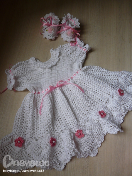 вязала из Пехорки Успешная, крючок кокетка - 1,7, юбка крючок 2, кокетку вяза приближенно к схеме, вязала стобиками с накидом - так как было мало времени до крещения, убавки делала на глаз