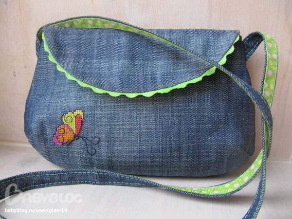 Сумочка из джинса, подкладка - американский хлопок, такой же как это платье http://www.babyblog.ru/community/post/rukodelie/1757775 . На лямке - репсовая лента. Вышивка из ВК. Вышивала на канве, которую потом выдергивала по одной ниточке, а уже после этого вышивала бэк.