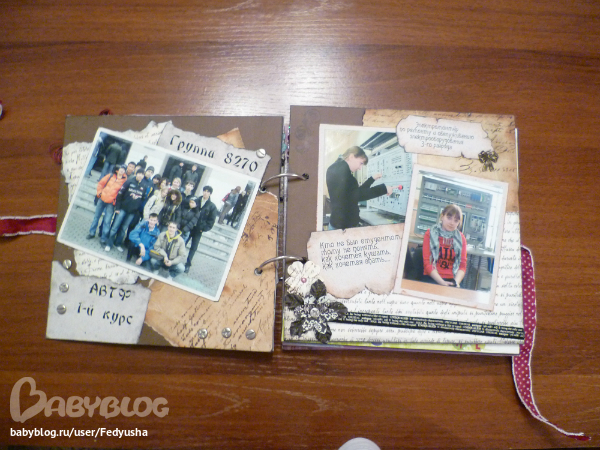 Мне не нравится на первом развороте где фото группы, то что фотография завалена к центру, как-то она перекашивает весь разворот, там или прямо лучше было фотографию разместить или наклонить ее от середины к краю, а вы ее от края к середине наклонили