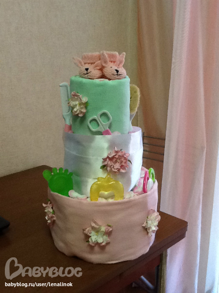 Кроме того, я првый раз в жизни попробовала сделать торт из памперсов