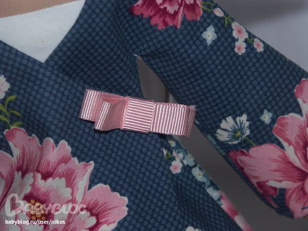 - одеть платье на куклу, левую полочку пришить к припуску бокового шва