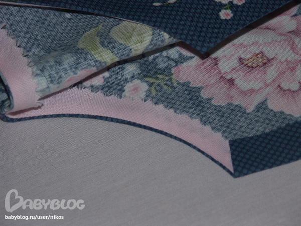 - стачать, припуск срезать ножницами "зиг-заг", разутюжить припуски, подгиб закреприть закрепкой нитками в тон