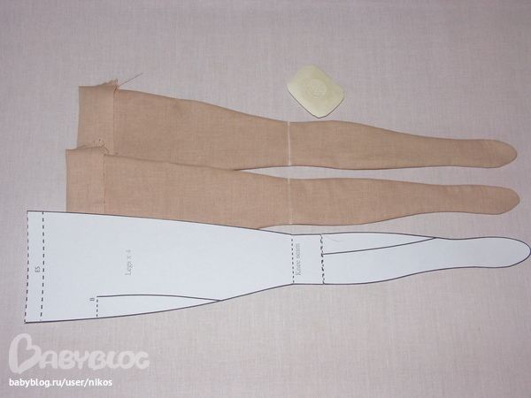 - по линии сгиба ноги в коленке проложить шов "назад иголку"