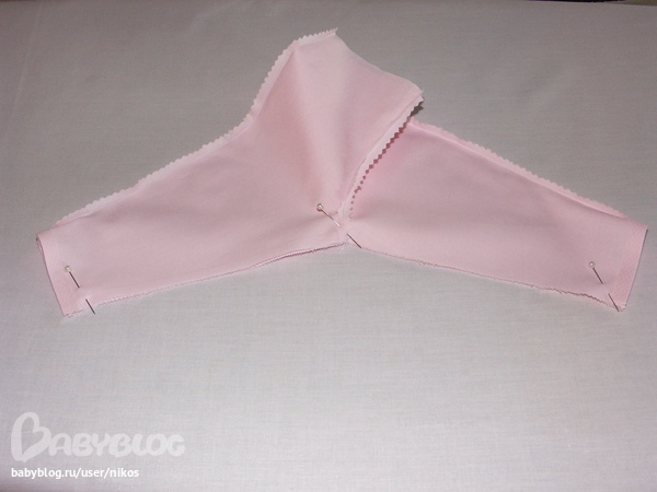 - сколоть булавками внутренний шов точно совмещая низ и средний шов штанишек