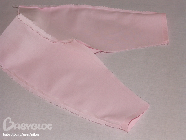 - штанишки стачать по боковым и средним швам, разутюжить, низ штанов подвернуть приутюжив клеевую двухстороннюю ленту