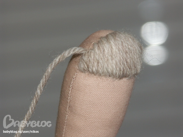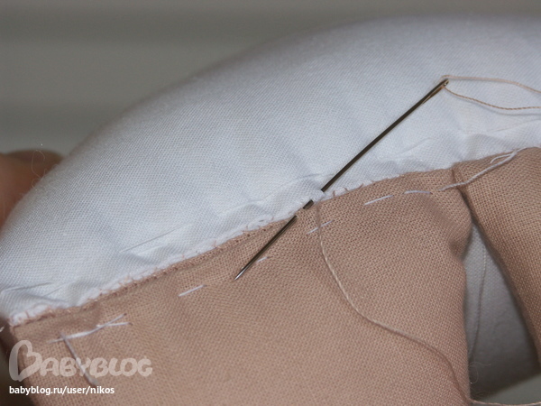 - низ тела сшить потайными стежками, не обрезая нитки стежками "через край" пришить заднюю часть одной, затем ворой ноги