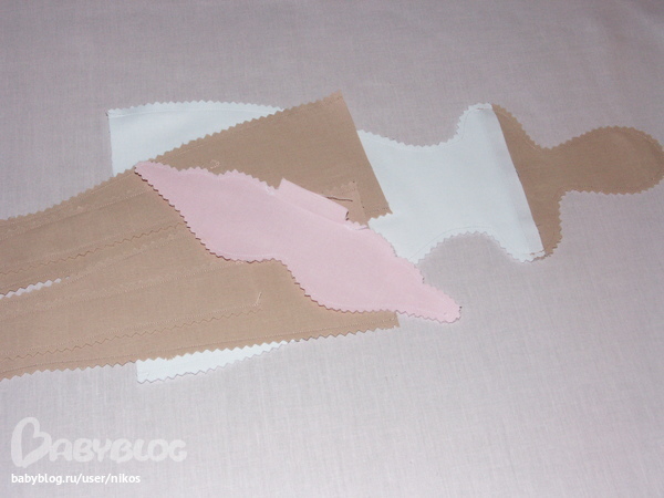 - важно детали для тела куклы раскладываем и выкраиваем по долевой нити. Долевая нить проходит вдоль кромки ткани,тоесть детали раскладываем паралельно кромке. Если кромка срезана: потянуть ткань руками в разные стороны, по долевой ткань почти не тянется. Для одежды куклы соблюдать долевую желательно, но не принципиально.