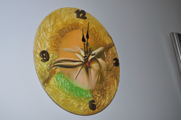 АЛЬБИНА, я в полном восторге и даже не знаю от чего больше! На часах классный объем прорисованный. Мне понравился контраст между светлым тоном мотива и темными цифрами и стрелками ( кстати практично очень - видно хорошо). Знаешь я такая "зажравшася" в плане просмотра работ, что все рукодельное рассматриваю не столько в целом, сколько в мелочах и всяких "фишках"..так вот - стрелки на часах словно повторяют лепестки цветка (блин вотя замороченная :-)) и надпись контурная- ну писк! Шкатулка чайная берет однозначностью и выдержанностью - мотив прст, но многотоновая лессировка с "рваными" краями это нечто...вообщем набор реально классный!