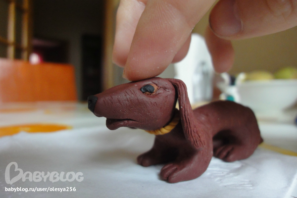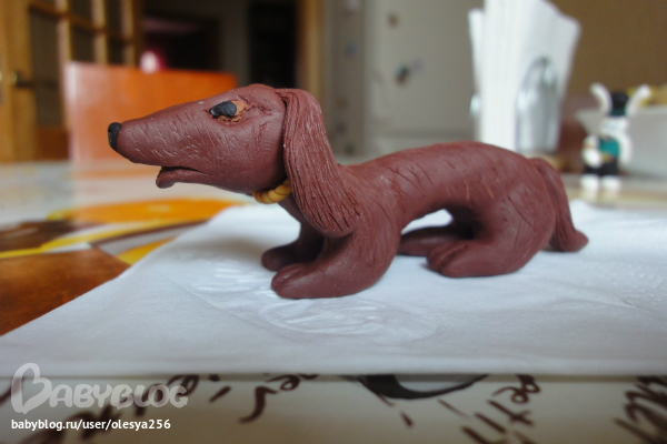 Примерно месяц назад у сестры состоялось прибавление в семействе: добавилась Аська, такса-найденыш, очень шустрая и ласковая малышка. Собственно, ее я пыталась вылепить: