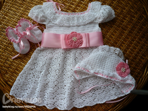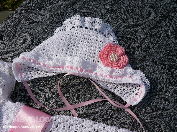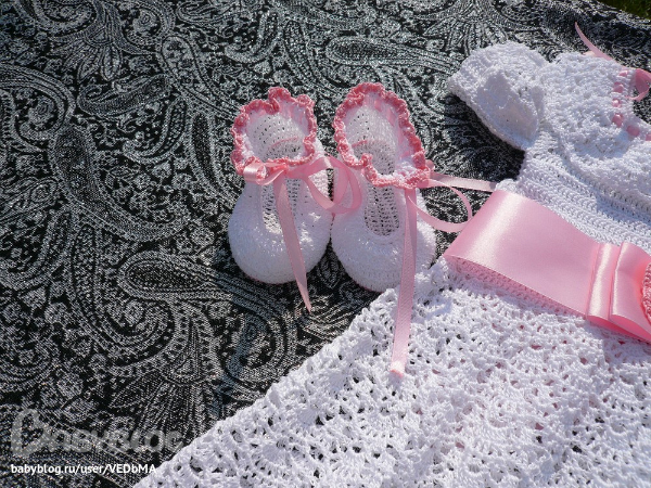 У меня как раз заказали крестильный комплект, можно сплагиатить вашу красоту???? Особенно поясок с цветочком понравился. Хочу связать нечто подобное.
