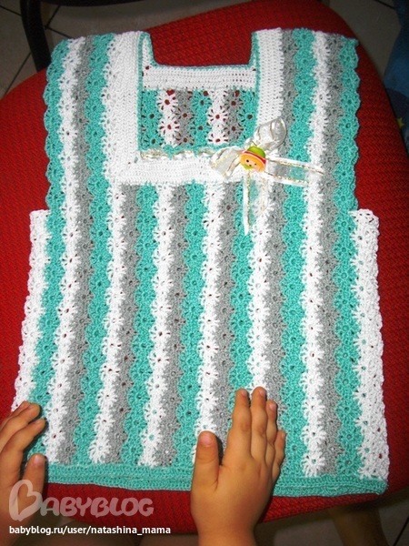 ))) Ну так это уже результат!)))) Человечку все интересно!)))) Еще каких-то пара лет - и будете вместе рукодельничать! Я, например, уже сейчас с Наташей серьезно советуюсь по вопросам сочетания цветов или фасона изделия. Вот в этой маечке она сама выбрала узор и цвета: