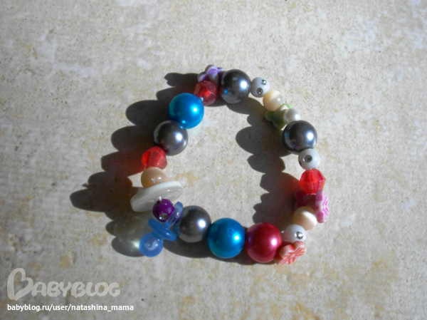 Бижутерия для слингомам. Слингобусы. Грызунки.Привет, девочки! Решила показать вам творчество моей доченьки! По-другому язык не поворачивается назвать! На мой взгляд, у нее есть рукодельные способности, а главное она очень старается)))) Каждый браслетик не похож на другой, но везде чувствуется ее стиль! Она сама выбирает цвета, последовательность сборки, размеры и формы бусин - все сама! Меня категорически прогоняет с моими советами и подходит только в конце работы с готовым браслетиком или бусами - узелочек завязать))))) Сидит с иголочкой (папа бледнеет от страха), мастерит))) С утра начинает))) Оцените и вы! Под катом фото отдельных браслетиков. Вот так мы с дочей рукодельничаем! Честно - я в восторге и дико горжусь своей рукодельницей!