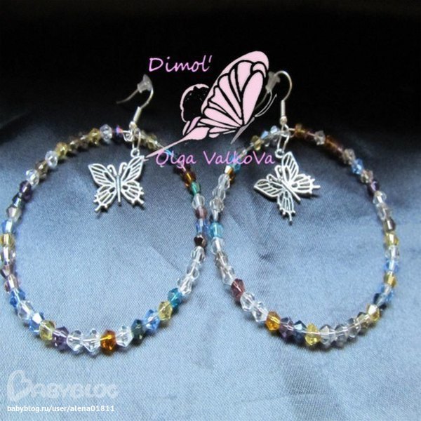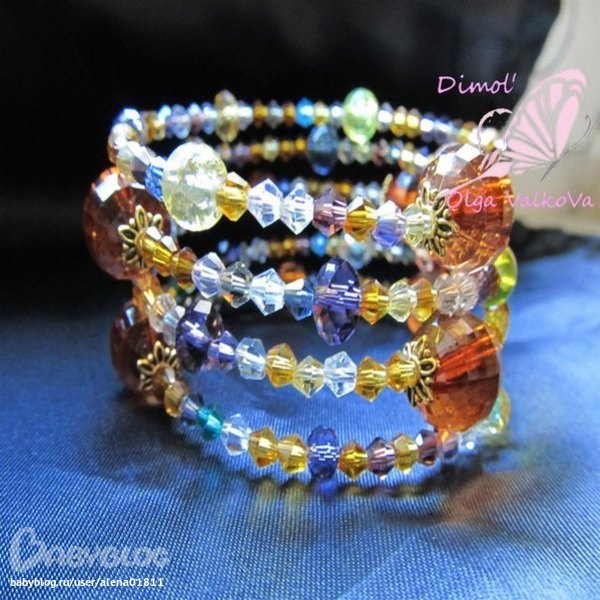 Серьги и браслет выполнены с применением бусин хрустальных, бусин кракле, мемори проволоки и фурнитуры