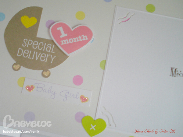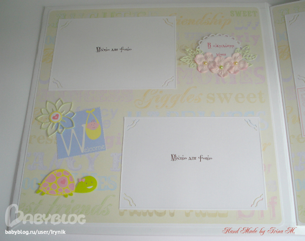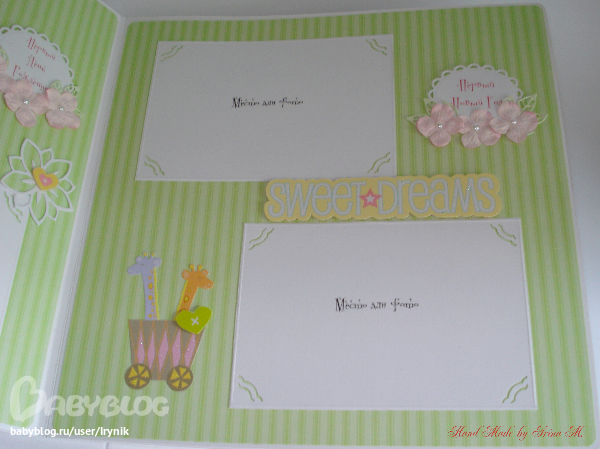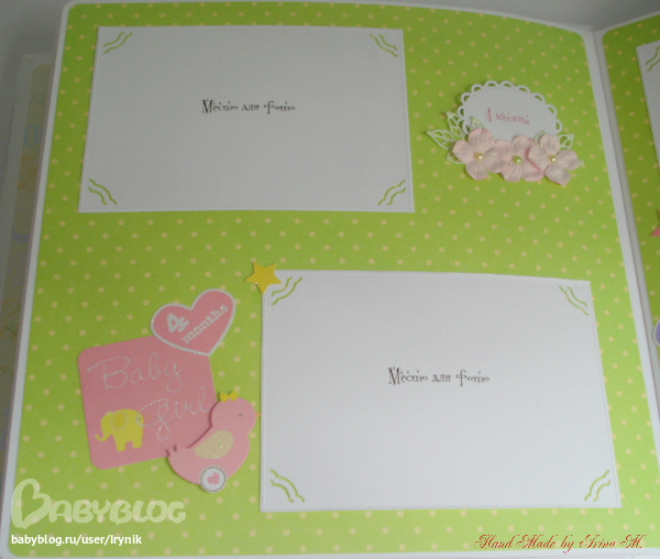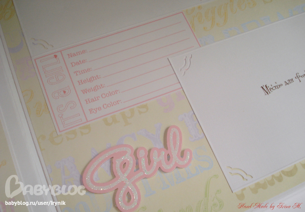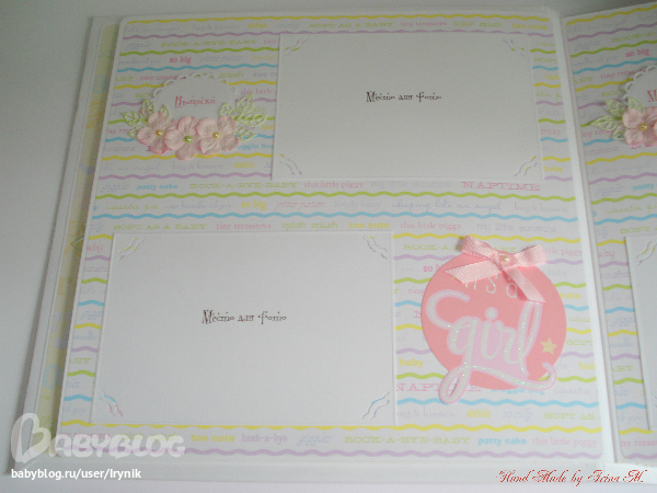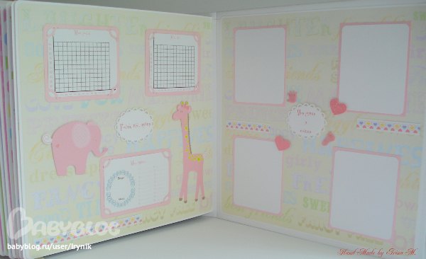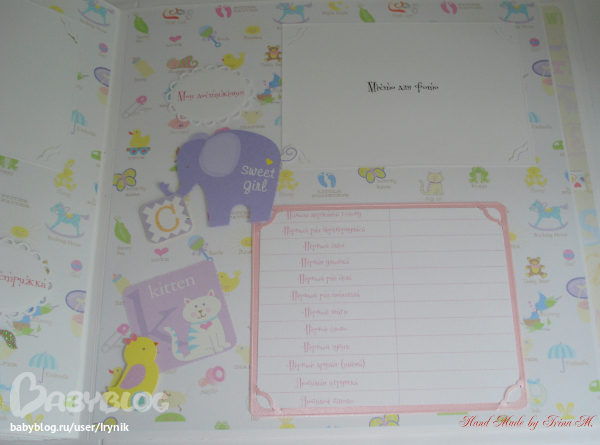 15 разворот. "Рост, вес, зубки"-таблички вынимаются из подложек для удобства записи данных малышки.