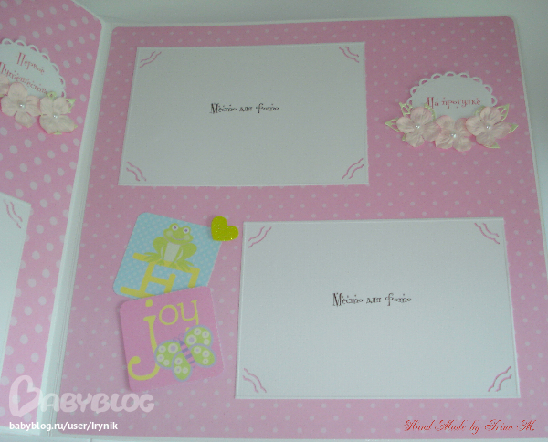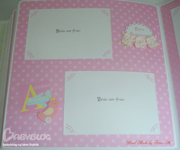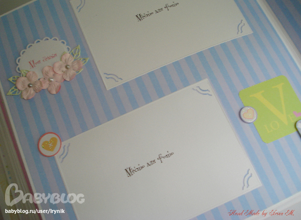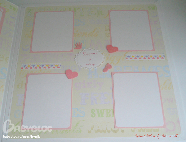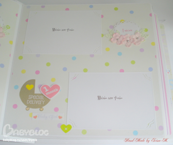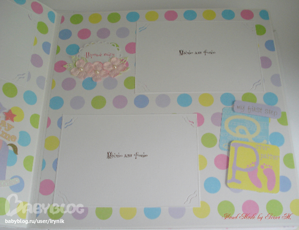 14 разворот. "Первые друзья" и "Первая стрижка", "Мои достижения"-здесь мама запишет первые успехи малышки.