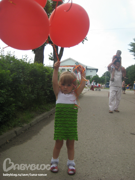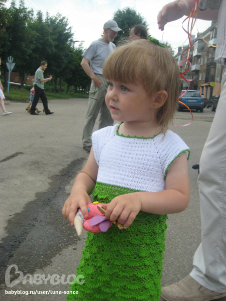 Очень захотелось мне порадовать свою Анютку новыми платьями, а тут еще и повод хороший - День Города в Светлом. Боялась, что погода не порадует, но все было просто супер!!! И погуляли и даже два платья в один день одели. Платья разные: одно вязаное, второе сшила.