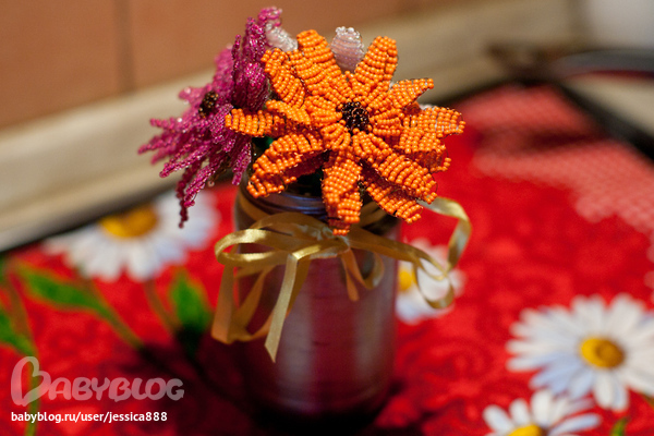 Бисер. Бисероплетение. Украшения из бисера.Такой вот невянущий букетик получился)))