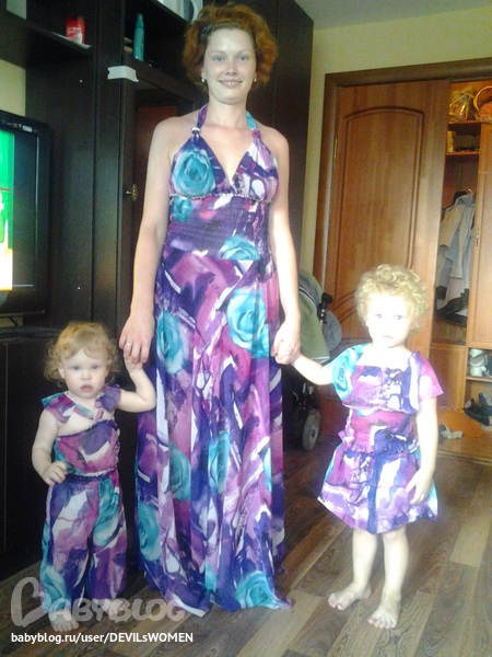 Шитье одежды, выкройки, ремонт одежды, шторы, швейные машины (уже приобретенные)Решила сшить себе сарафан в пол, а из остатков пошились костюмчики моим девчонкам.