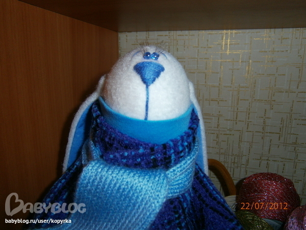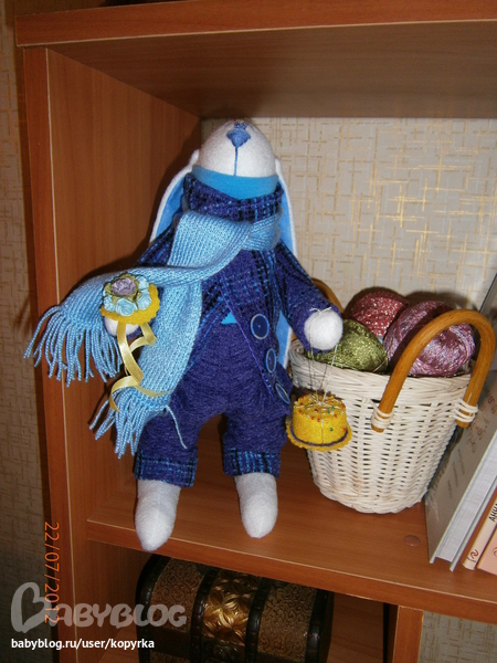 В гости на чашечку чая с тортиком отправился этот заяц. Сын назвал его Максимом.