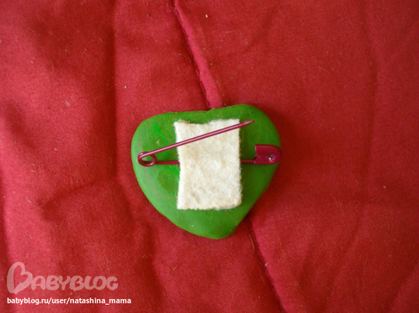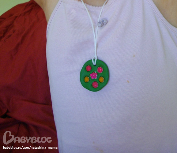 А здесь она дырочку не проковыряла, забыла, поэтому мама из нее сделала брошку))))) Наташе понравилось. Она покладистая)))) Ей бы еще клей научиться не литрами лить))))